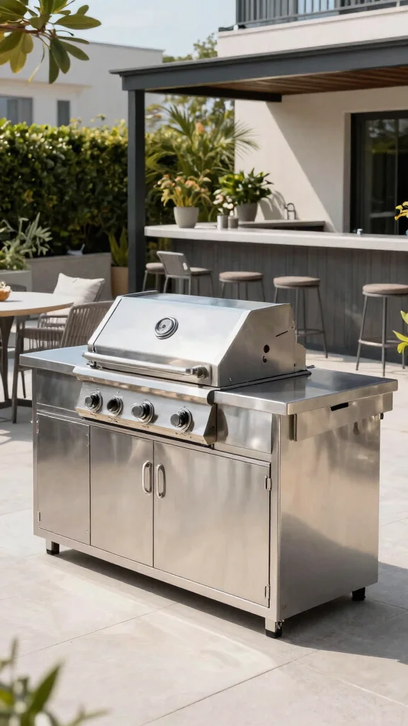 Looking for a chic and contemporary feel? Stainless steel grill islands are your go-to for a sleek outdoor kitchen. Their modern look is complemented by easy maintenance and resistance to the elements. Imagine a space with built-in grills and storage that seamlessly blends style and functionality, making outdoor cooking a joy.