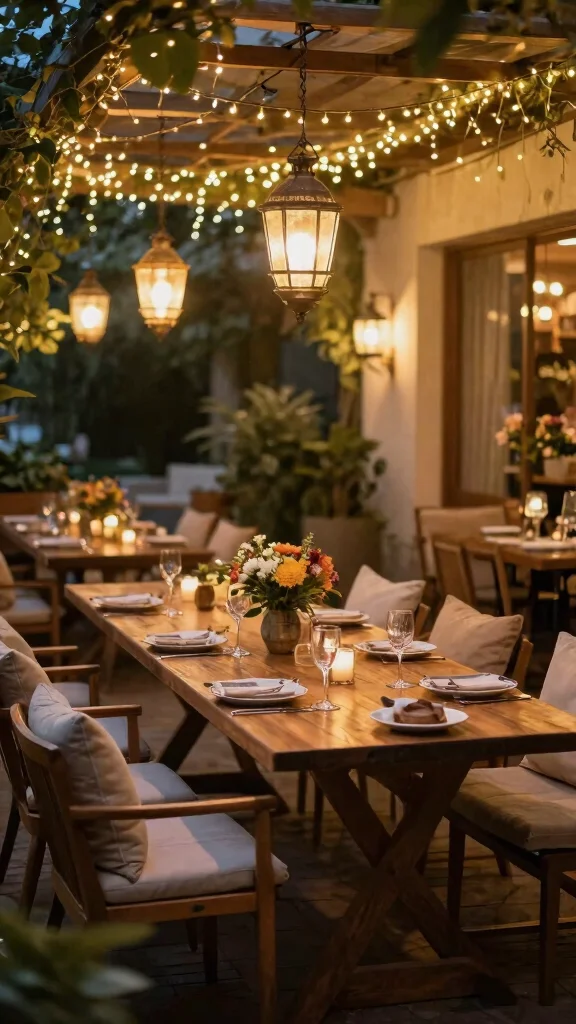 – Ambient Lighting: String lights or lanterns create a charming evening glow.