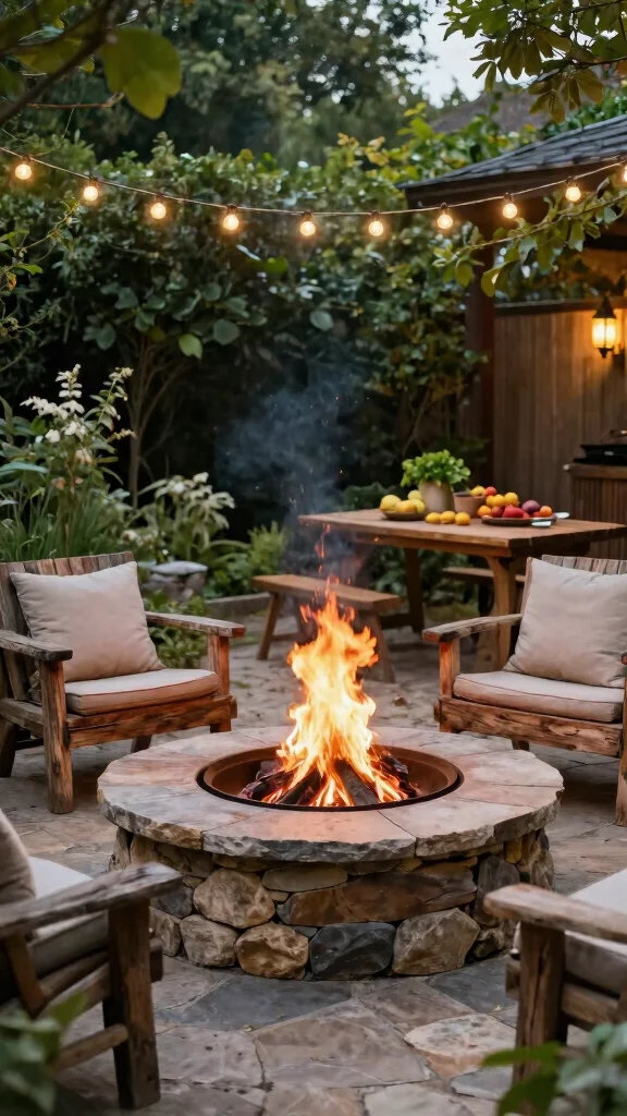 Building seating around the fire pit with eco-friendly materials encourages social interaction, making it the heart of your outdoor gatherings.