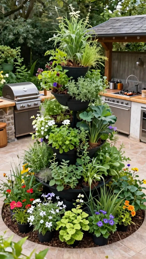 Looking to maximize your gardening space? A vertical cooking garden is a beautiful and functional addition to any outdoor kitchen. This design allows you to grow fresh vegetables, fruits, or herbs vertically, making it easier to tend to your plants while saving space.