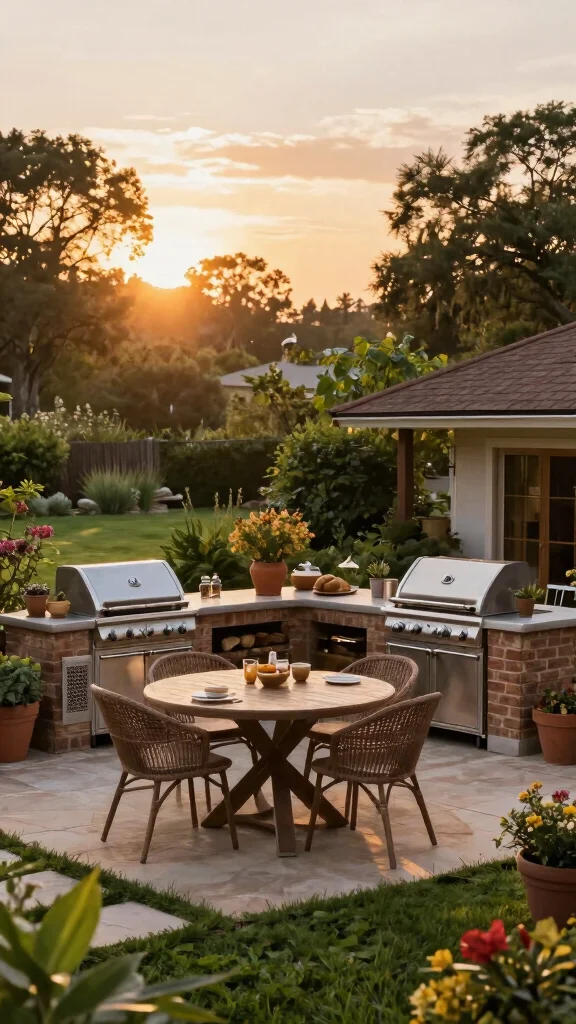 Choose garden design tips that blend green elements with cooking surfaces, like a herb wall near the sink, integrated planters, and drought-tolerant plants to cut maintenance. Use compact appliances and pick patio ideas that favor shade and comfort, turning a tiny area into an inviting outdoor entertaining areas hub. Keep sustainability in mind with reusable serving ware and rainwater catchment if possible.