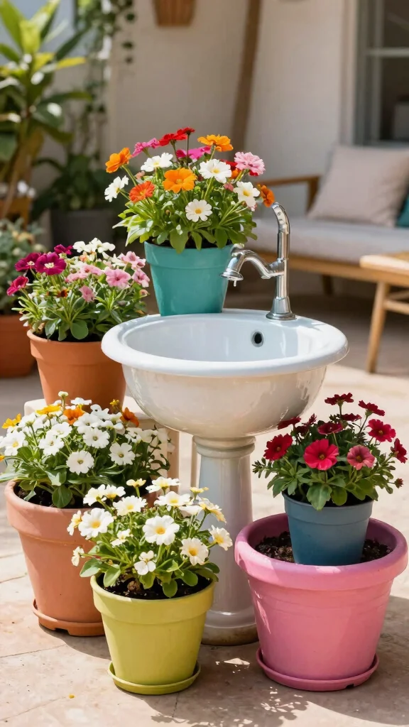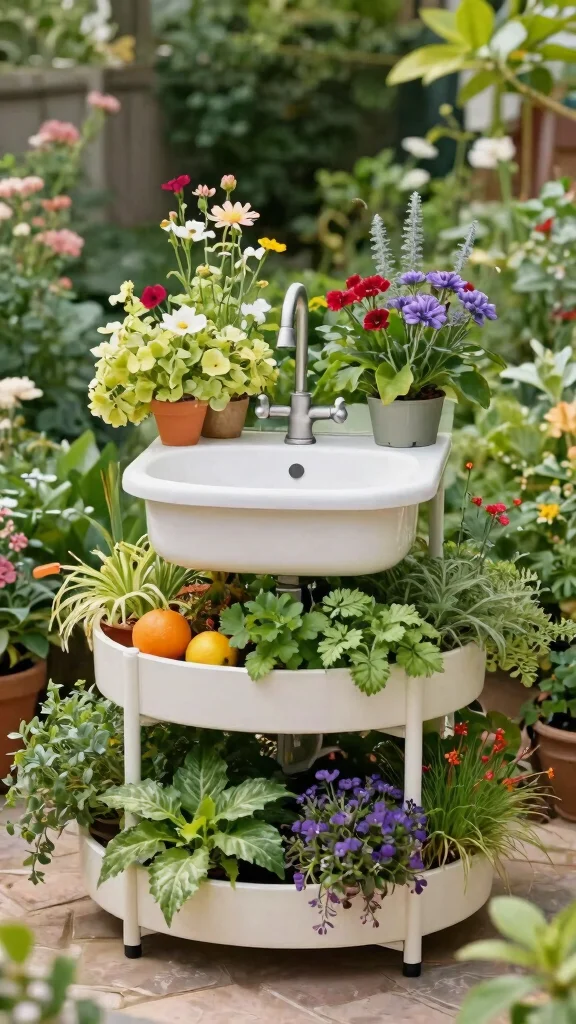 Choose plants that thrive in shallow soil for upper tiers, and ensure the sink height is comfortable for use. Decorating the sink with colorful pots can elevate its overall appeal, making it a focal point in your garden.
