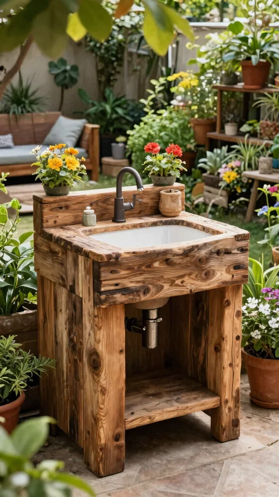 Utilize reclaimed wood to build a unique sink that adds character while being eco-friendly.