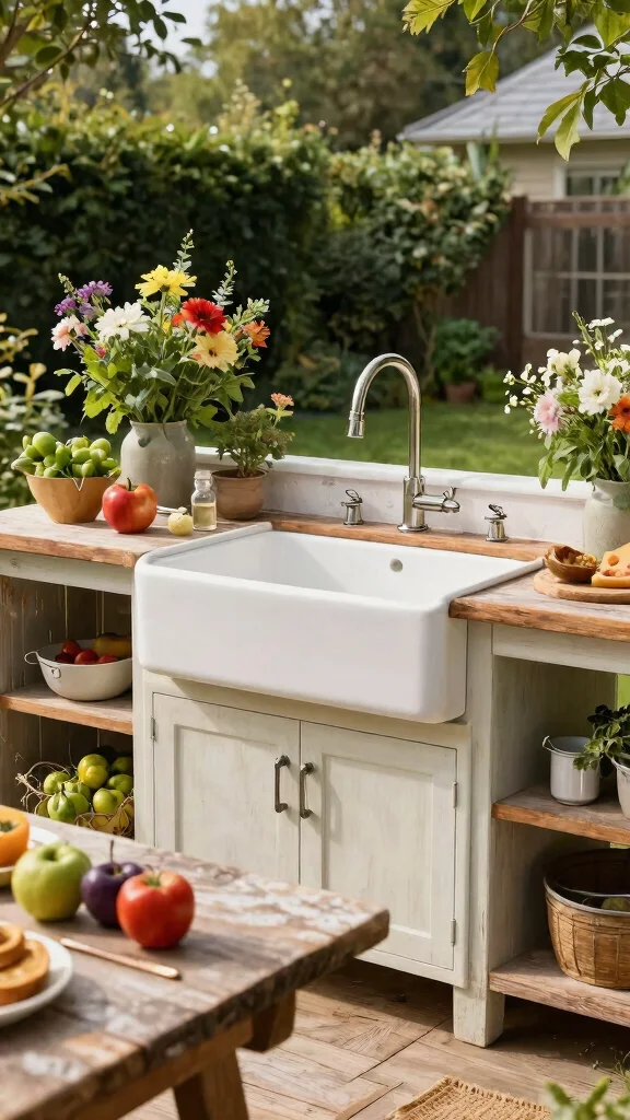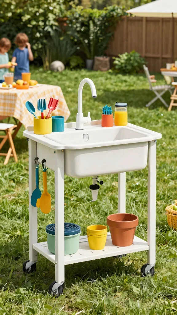 This delightful idea can engage kids and guests in the garden, making cooking and cleaning a fun family activity. It adds a creative flair while enhancing the overall atmosphere of your outdoor space.