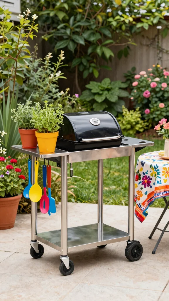 For small spaces, it keeps everything you need within arm’s reach, reducing trips between the grill and workspace. Look for a sturdy base, built-in shelves, tool hooks, and a fold-down or compact design to fit balconies or narrow patios.