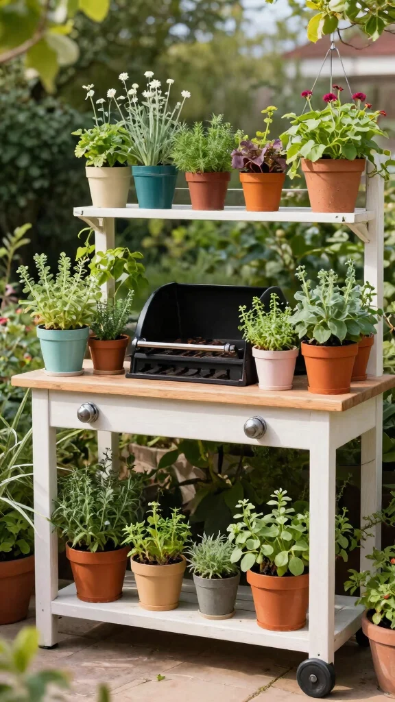 Do you want to combine your love for grilling with gardening? An herb garden grill station transforms your cooking area into a fragrant oasis of fresh herbs. Use vertical planters or tiered shelves to maximize space while keeping your favorite herbs like basil and rosemary at hand.