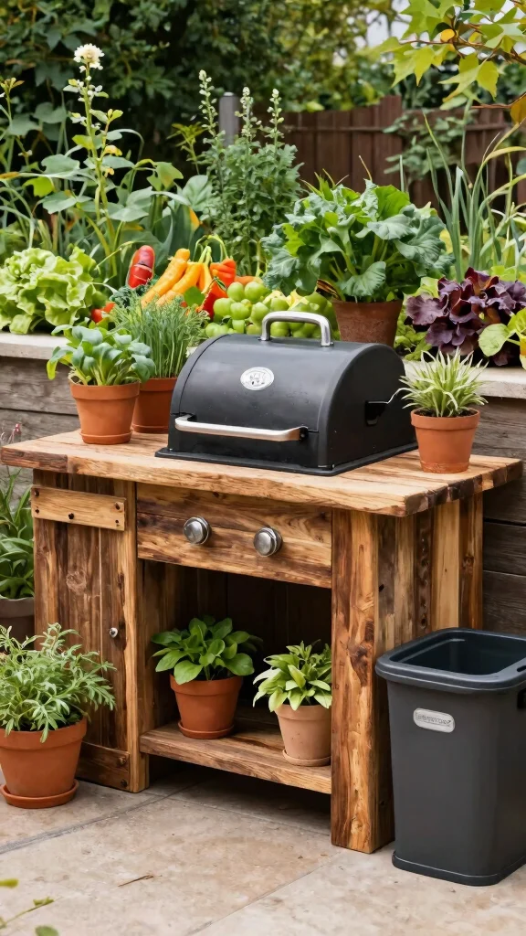 This approach reduces waste and promotes sustainable practices while offering a unique appearance. Incorporate a compost bin for food scraps and start a small vegetable garden to grow your grilling ingredients.