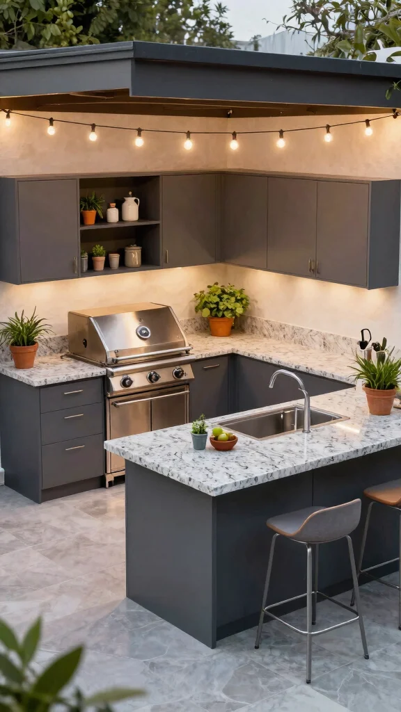 This setup brings convenience with everything you need in one area, minimizing trips inside. Opt for weather-resistant materials to ensure durability. An outdoor sink can simplify clean-up, while integrated seating encourages guests to mingle as you cook.