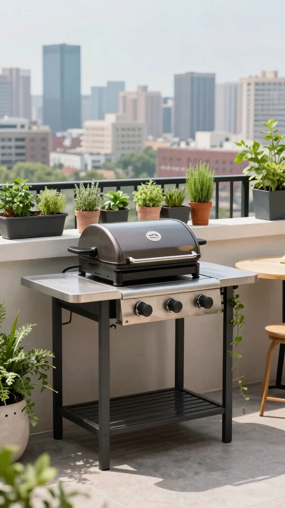 This design is perfect for apartment dwellers who want to enjoy BBQs without hassle. Maximize your balcony experience with foldable furniture that you can store away when not in use. Vertical gardening solutions can also enhance your space and provide fresh herbs for your grilling needs.