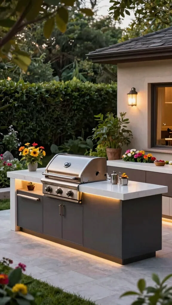 Want to make a bold statement in your backyard? A modern barbecue island can serve as a stunning centerpiece, even in smaller spaces. This scaled-down version offers all the functional benefits without overwhelming your area.