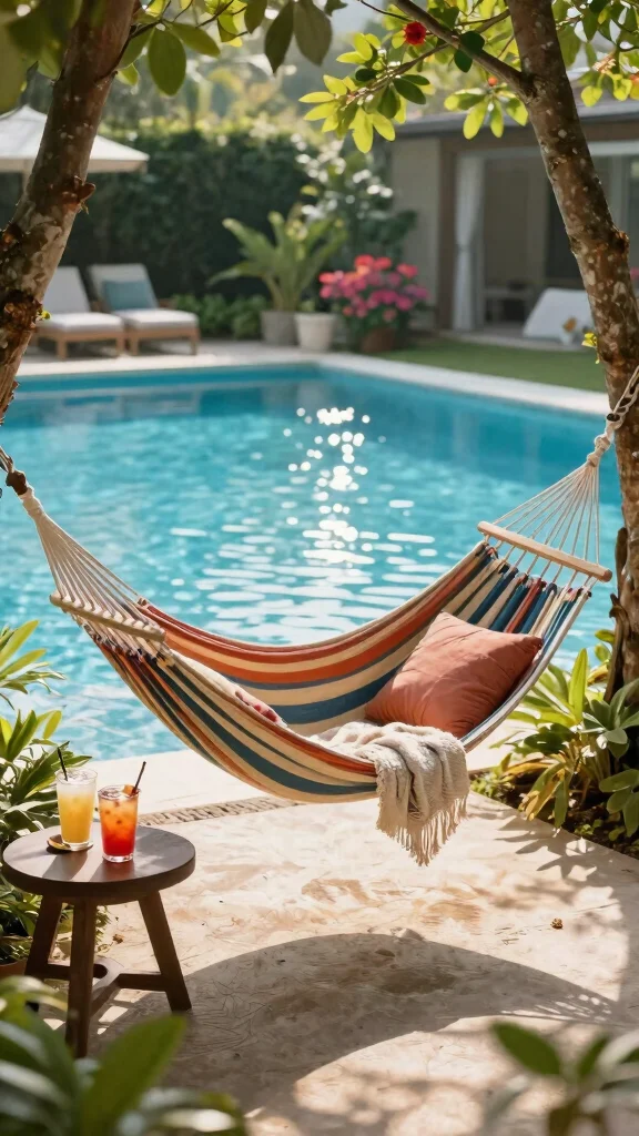 For a serene vibe, consider adding relaxing hammocks to your pool area. Hammocks offer a perfect escape for guests wanting to unwind and soak up the sun in comfort.