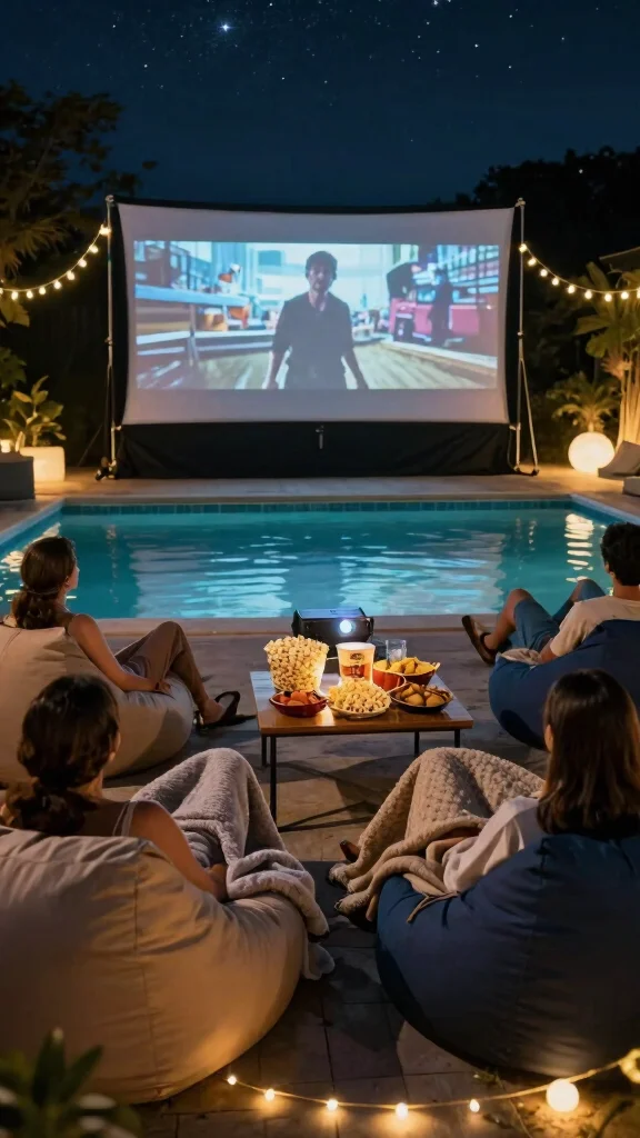 Your pool area will become an entertainment hub, where friends and family gather for enjoyable movie nights throughout the season.