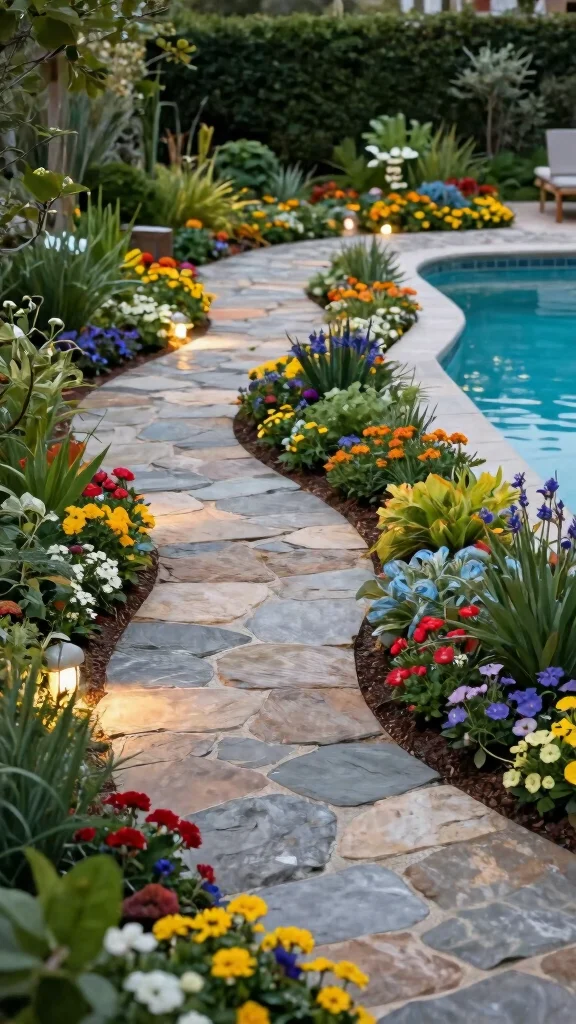 Guide your guests through your pool area with stunning garden pathways that enhance both charm and functionality. Pathways not only beautify the space but also provide a safe route for navigating around the pool, ensuring everyone can enjoy your outdoor oasis.
