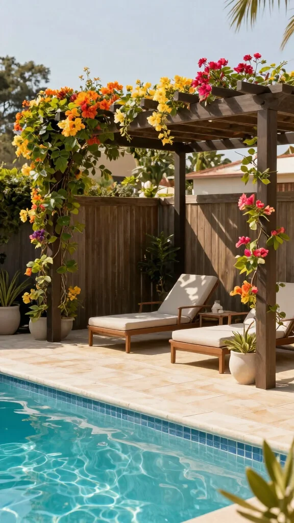 Pergola fencing adds a unique touch, providing both shade and style for your pool area. This structure creates a beautiful outdoor retreat while ensuring safety for your loved ones. You can drape it with fabric or climbing plants for added shade and visual appeal.