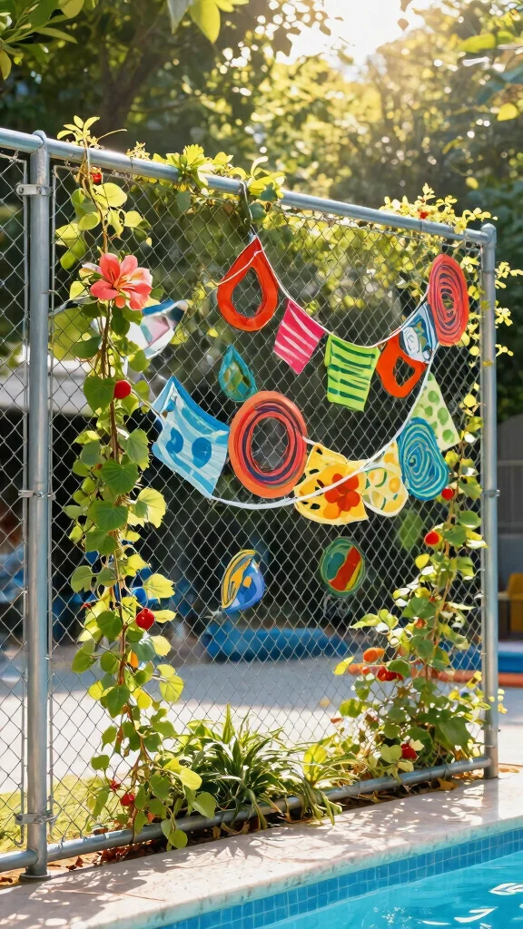 Enhance chain link fencing with creative decor elements to make it visually appealing while maintaining functionality.