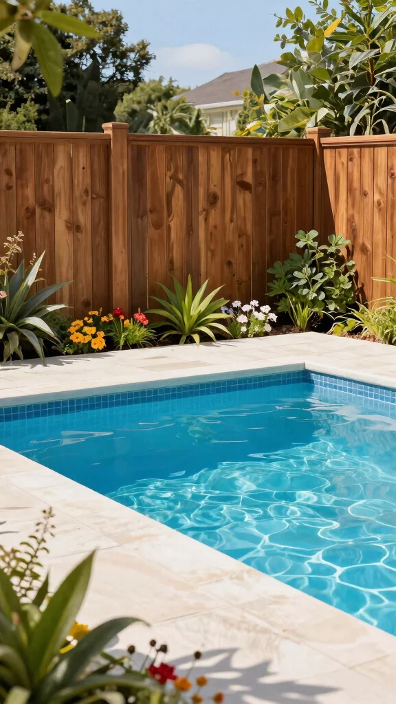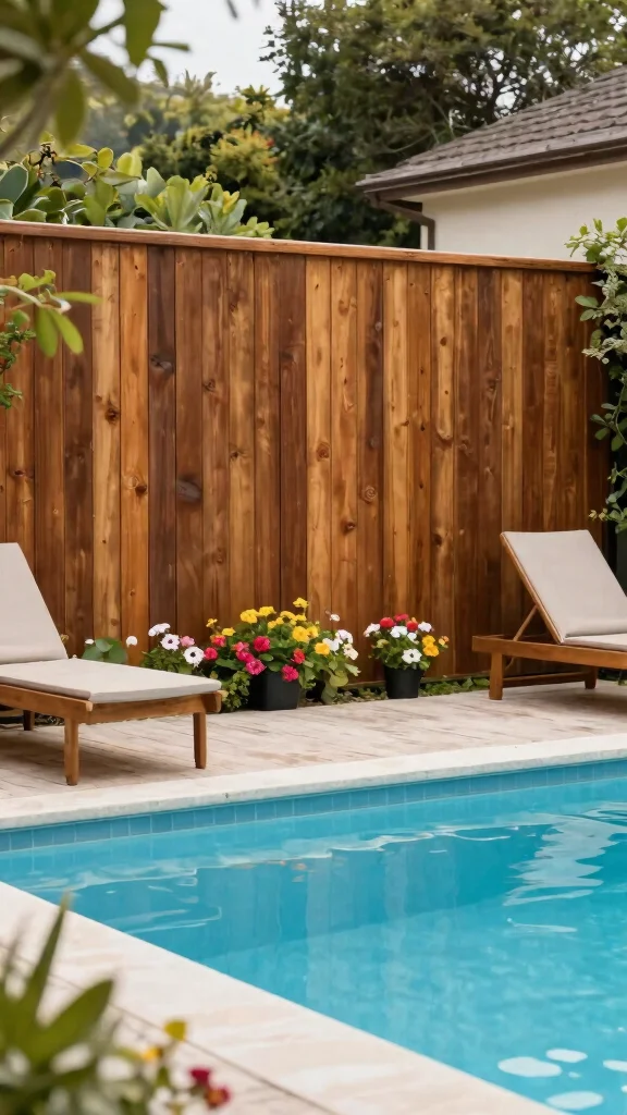 Fun fact: Wooden slat fencing can boost garden airflow by up to 30% while keeping kids and pets safely contained. Choose natural wood tones or vibrant stains to transform your pool area into a cozy, inviting gathering space.