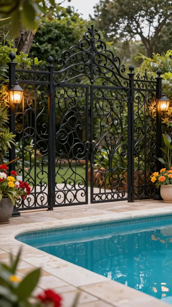 Wrought iron fencing brings an air of timeless elegance to your pool area. Its intricate designs not only add character but also provide robust security. You have the option to customize your fence with ornate patterns, making it a stunning focal point in your yard.