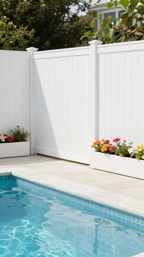 Choose weather-resistant materials like powder-coated aluminum or treated wood, and finish with colors that complement your home for a cohesive pool area aesthetics look. This approach gives you a multifunctional fencing solution you can tailor as your garden grows.