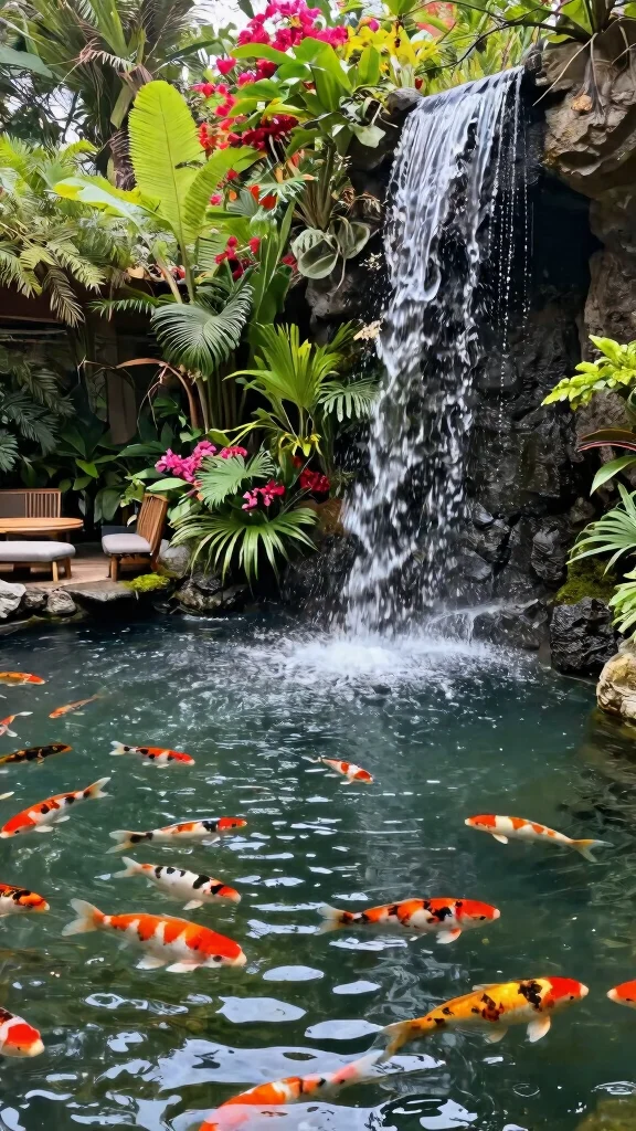 – Blend in natural waterfalls with tropical plants