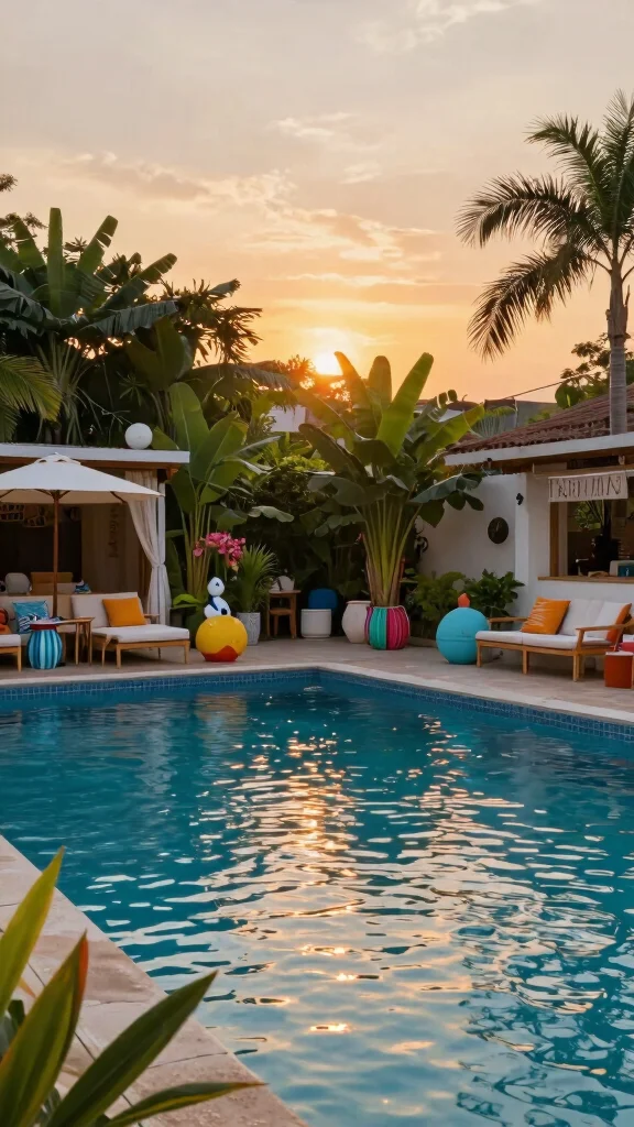 Mix and match colors and patterns to create a dynamic look. Incorporate whimsical items like floating pool toys or string lights that twinkle at night, enhancing the fun atmosphere. Your decor should invite relaxation while making a bold statement.
