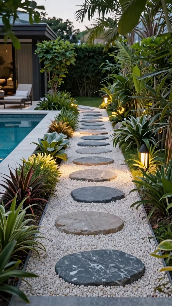 Choose materials that complement your pool and landscape design for a cohesive look. Create winding paths for a more organic feel, or opt for straight lines for a modern touch. Incorporate plants along the pathways to soften edges, while eco-friendly lighting increases safety during evening hours.