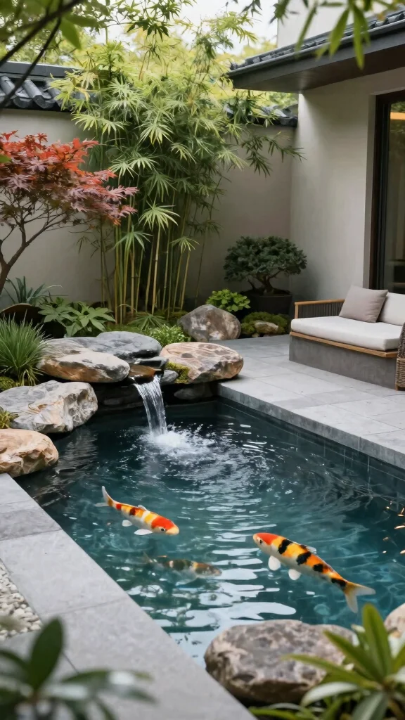 Start by adding a small water feature like a fountain or koi pond for soothing sounds. Use sand or gravel for pathways to promote a sense of grounding. You might also want to create a meditation area with comfortable seating beside the pool, accompanied by bamboo or evergreen shrubs for privacy.