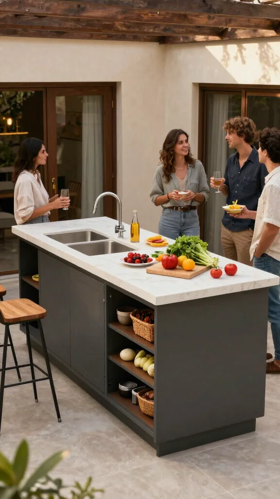 Fun fact: a well-designed multi-functional island in a semi outdoor kitchen can cut prep-to-serve steps by up to 40%. With built-in storage and an outdoor sink, you’ll entertain longer and clean faster. The result? More gathering space for friends and family.