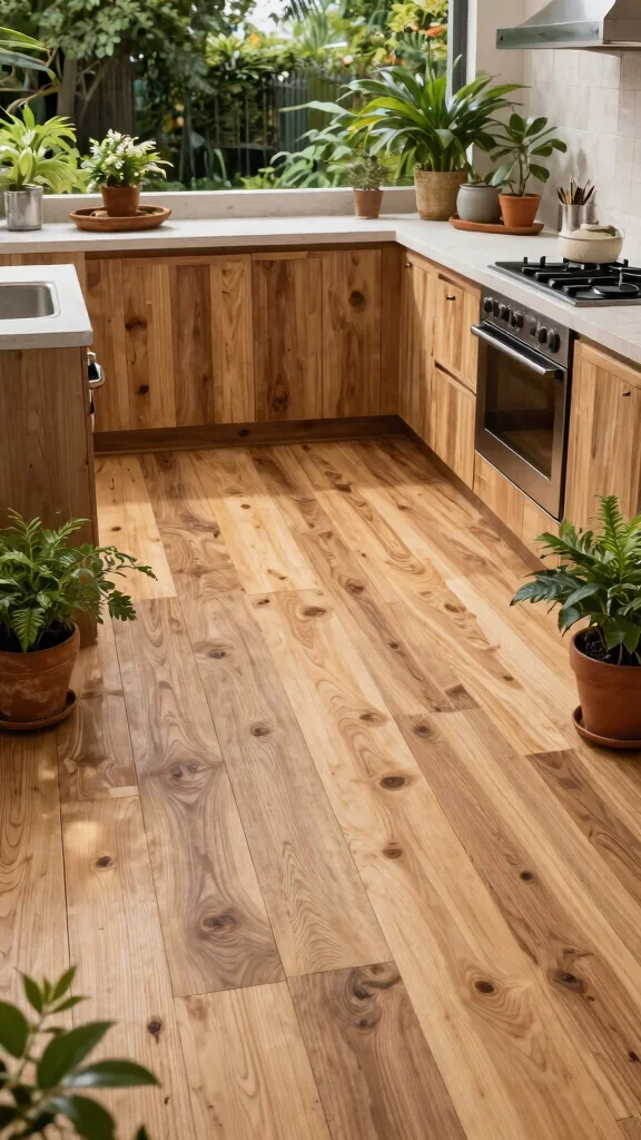 Choose recycled materials like rubber or wood for your flooring, or consider local stone for a rustic touch. Opt for permeable surfaces that allow water absorption to reduce runoff. The right flooring choice enriches the overall aesthetic while ensuring a safe and environmentally friendly cooking area.