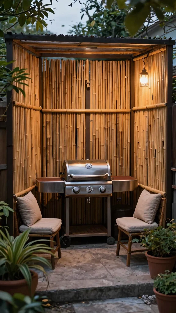 Select attractive screens made of wood, bamboo, or woven materials to complement your grill setup. Position your grill in a corner, ideally with privacy screening to create an inviting area where you can relax after grilling.