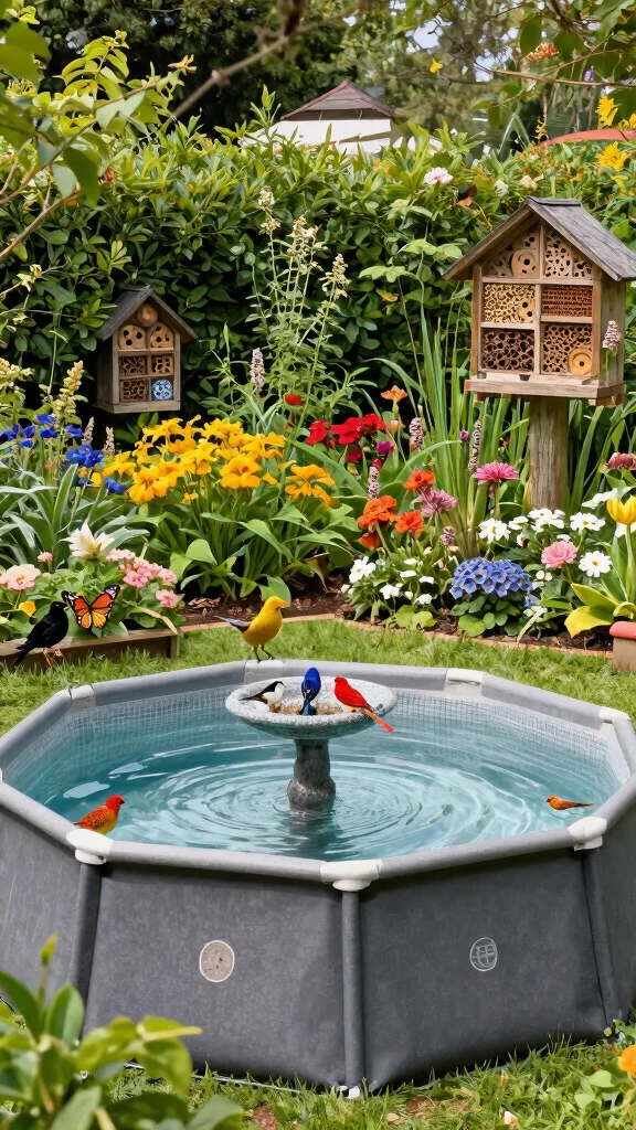 Surround the pool with native plants to enhance the natural environment, attracting local wildlife and fostering biodiversity. This combination not only beautifies your space but also contributes positively to the ecosystem.