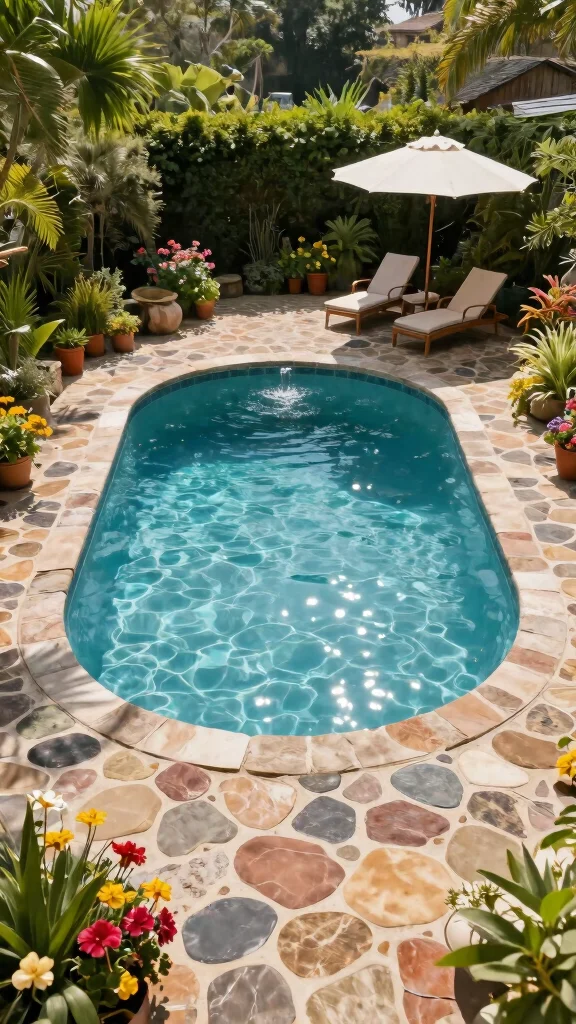 Consider incorporating inlaid designs with pebbles or utilizing various colored stones to reflect your personal style. This thoughtful design not only adds visual appeal but also creates a safe and functional space for outdoor enjoyment.